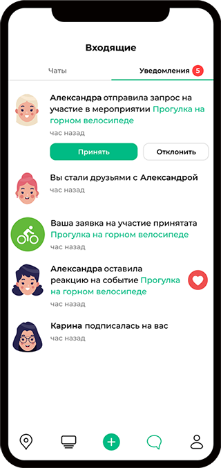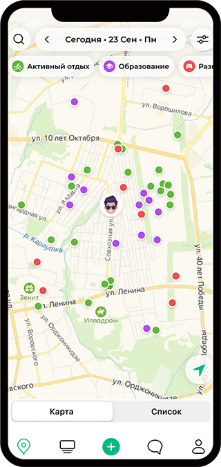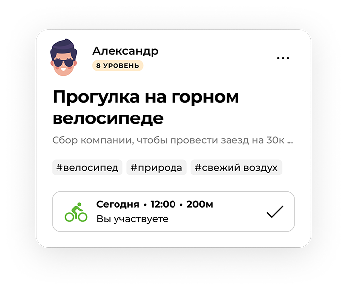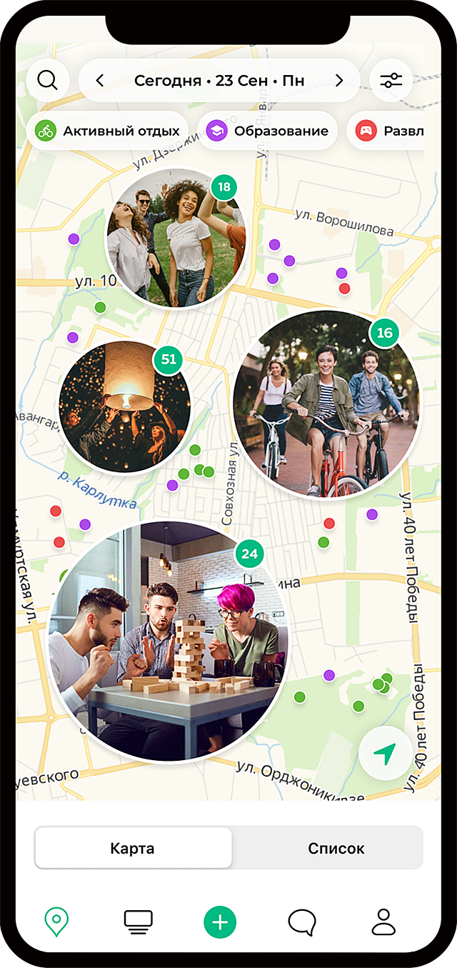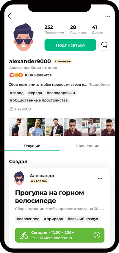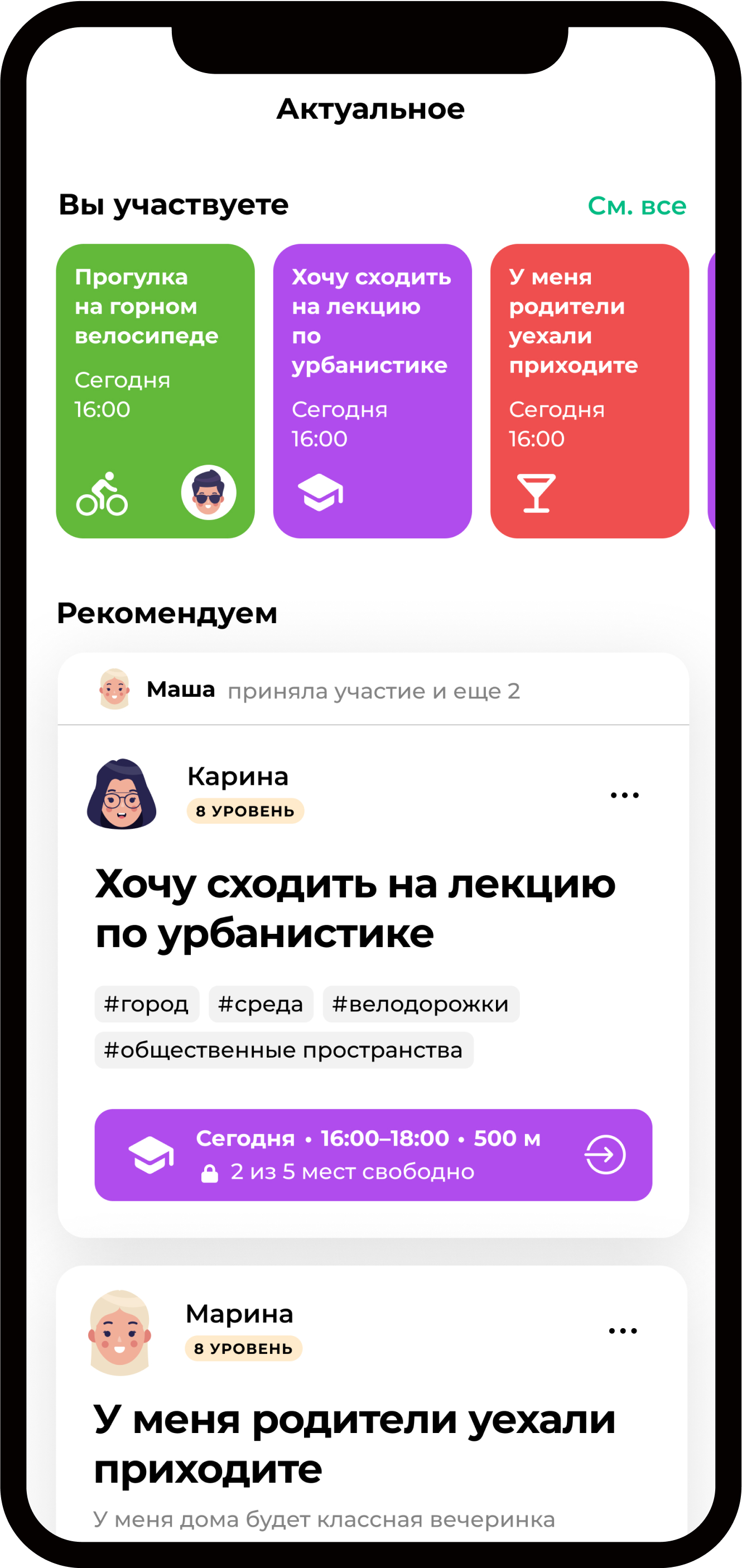 В приложении вы легко найдете компанию для того, чтобы покататься на велосипеде в парке, пойти на концерт, каток и т.д.